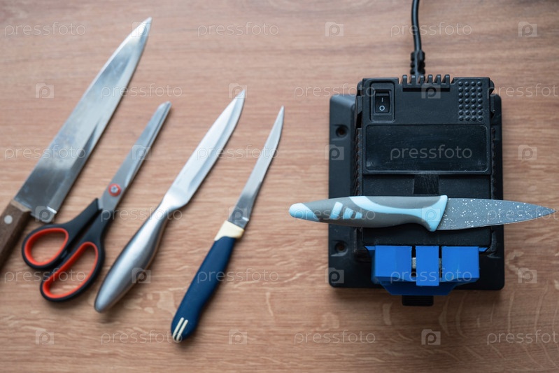 Flatlay лезвие ножа, ножницы, заточки, пыль летает на машине