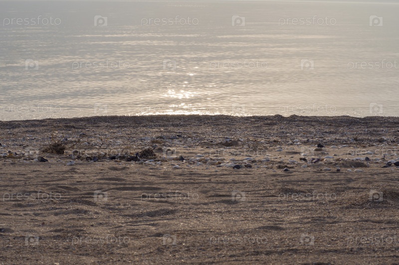 Текстура песчаного пляжа. Крупный план песчаного пляжа с ракушками и рябью на поверхности воды. фон береговой линии