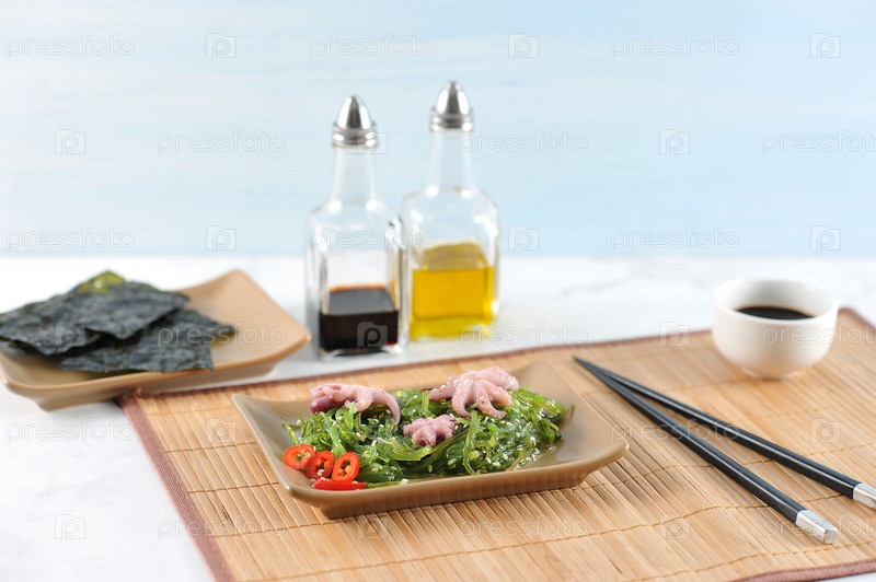 Салат из морской капусты чука, осьминог