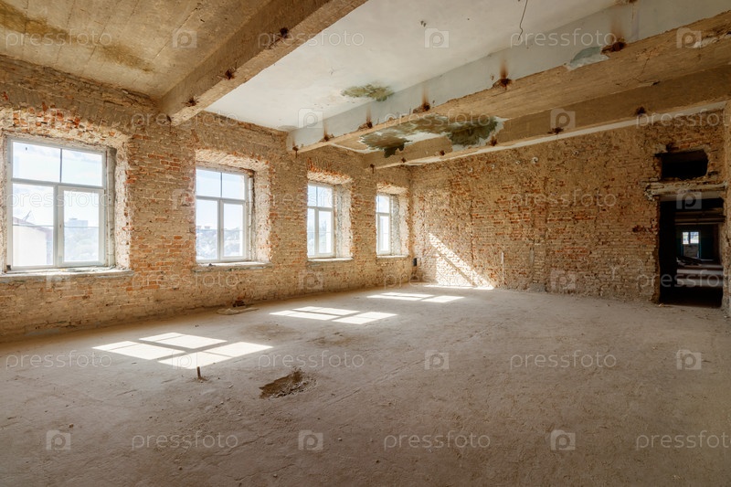 Старый гранж-интерьер с разрушенной кирпичной стеной