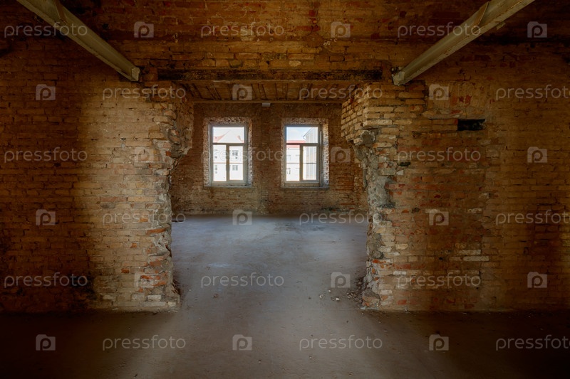 Старый гранж-интерьер с разрушенной кирпичной стеной