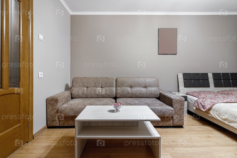 Большая двуспальная кровать в комнате с диваном прикроватная тумбочка