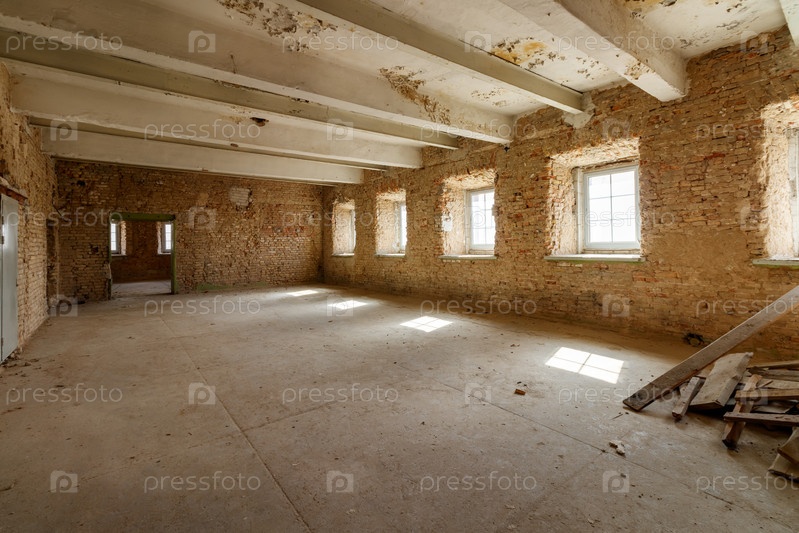Старый гранж-интерьер с разрушенной кирпичной стеной