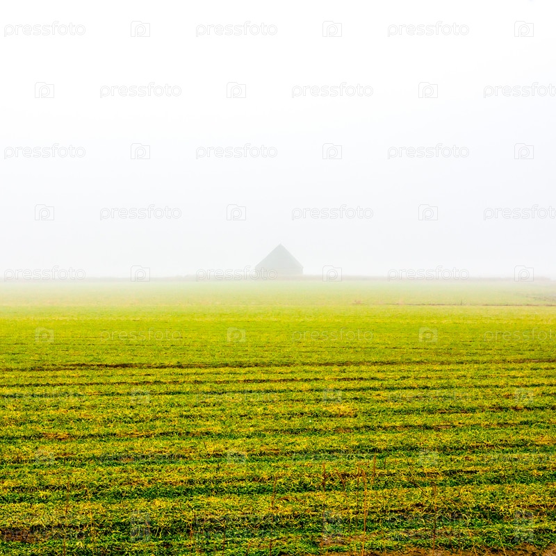 Осенние поля в утреннем тумане. Остров Тексель, Нидерланды
