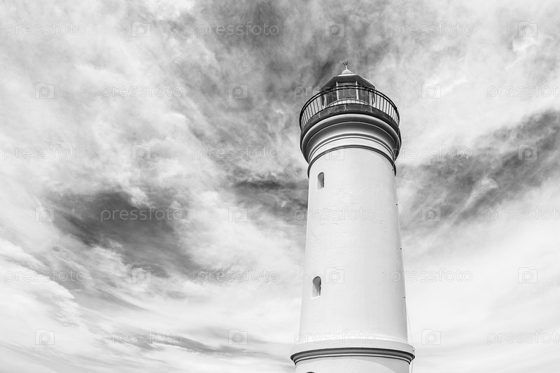 Черно-белое изображение австралийского маяка Кейп-Отуэй, Грейт-Оушен-роуд, Австралия