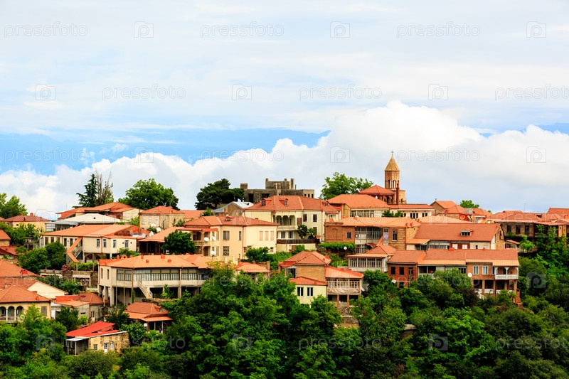 Вид на небольшой древний город Сигнахи (Сигнаги) в Грузии, Европе