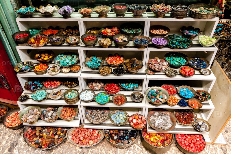 Полудрагоценные камни на уличном рынке в Тель-Авиве, Израиль