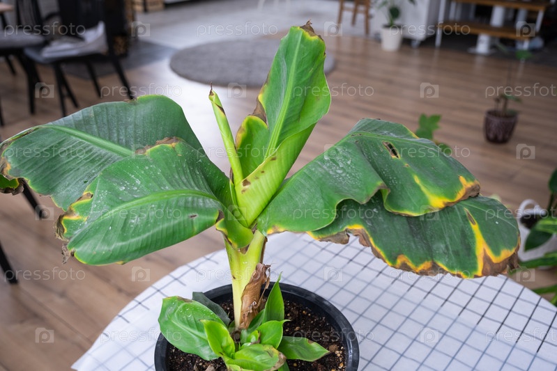 Проблемы при выращивании домашних растений Проблемы при выращивании домашних растений Муса Банан - листья листья с желтыми сухими кончиками, увядшие, пораженные паутинным клещом, перелив растения, загнивание