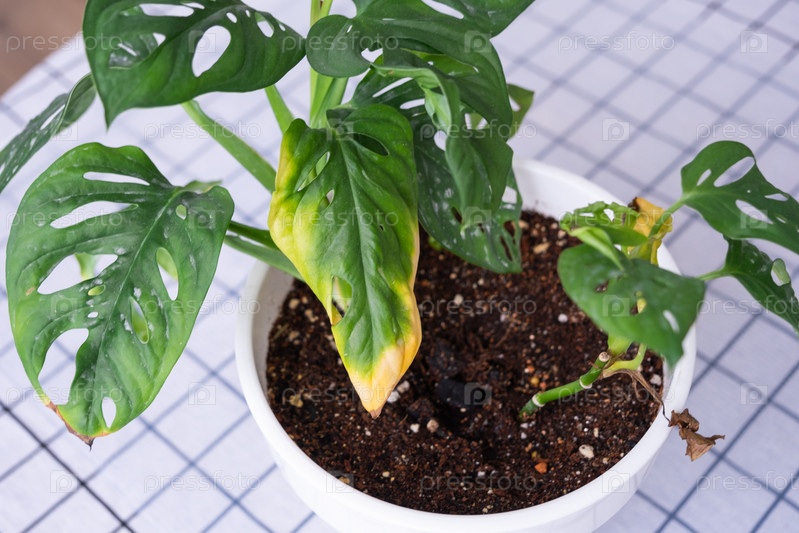 Проблемы при выращивании домашних растений Monstera Monkey Mask - листья с желтыми сухими кончиками, увявшие, пораженные паутинным клещем, переливание растения, гниение