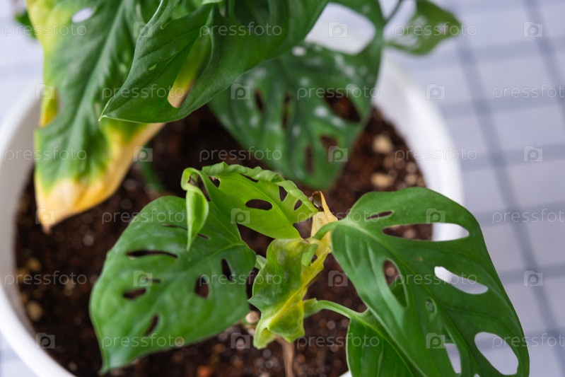 Проблемы при выращивании домашних растений Monstera Monkey Mask - листья с желтыми сухими кончиками, увявшие, пораженные паутинным клещем, переливание растения, гниение