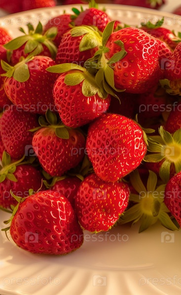 Сочная красная клубника на белой тарелке. Генерация ИИ