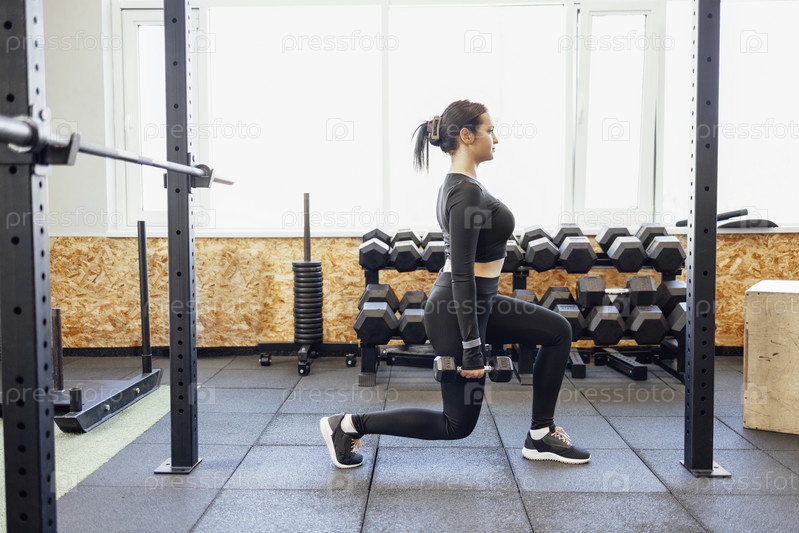Сильная брюнетка занимается кроссфитом