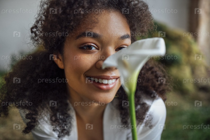 Красивая афро девушка в белой рубашке отдыхает в парке