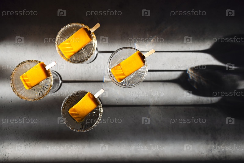 Стильный алкогольный коктейль на светлом столе в мягком солнечном свете