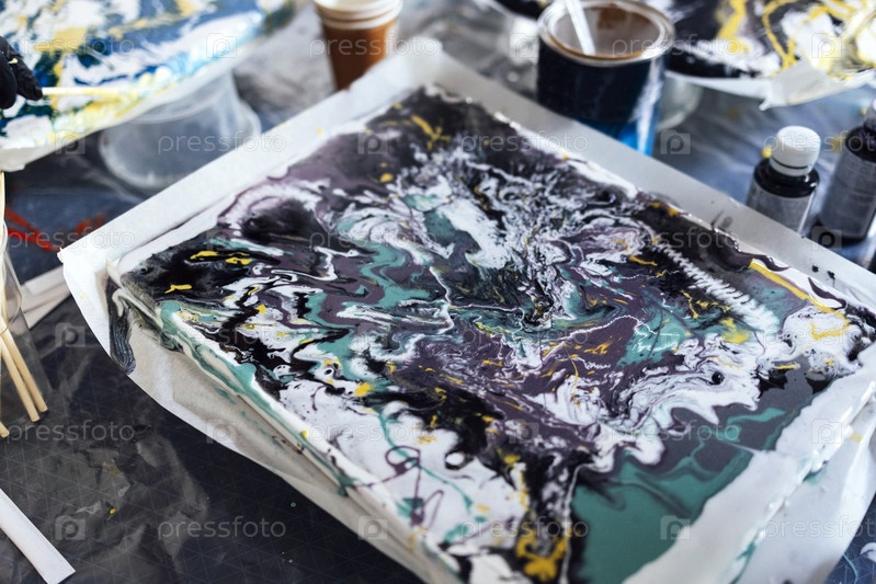 Процесс создания картины акриловыми красками. Абстрактный фон. Заливка акриловой жидкостью. Обучение живописи или мастер-класс