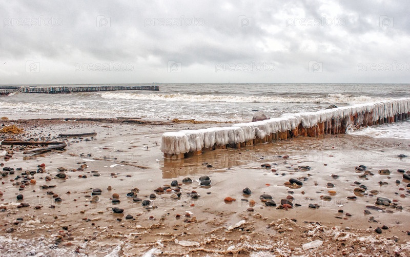 Волнолом, покрытый льдом