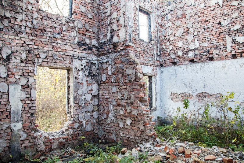 Заброшенный кирпичный дом внутри