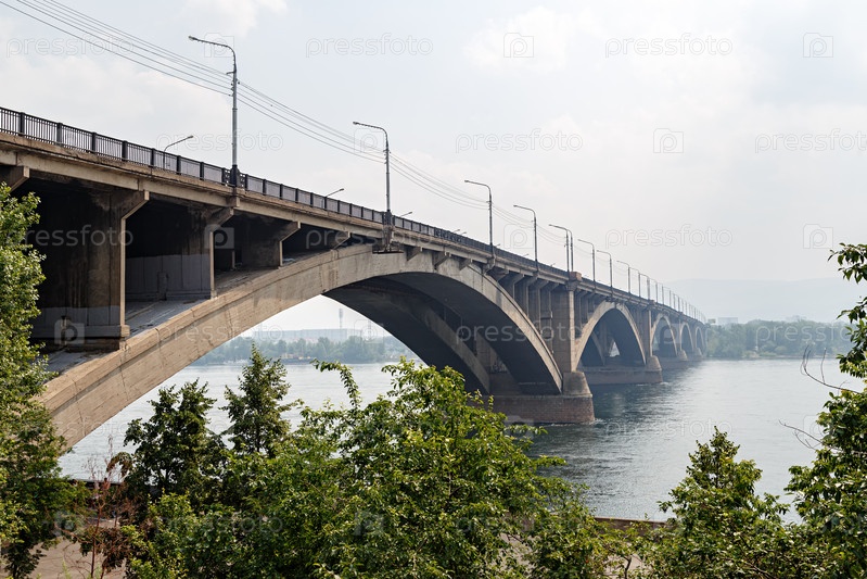 Мост через реку Енисей в городе Красноярске - Коммунальный мост. Россия