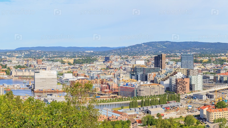 Осло, Норвегия. Панорама деловой части города без вывесок