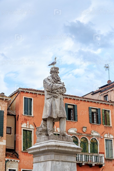 Венеция, Италия. Большой мраморный памятник итальянскому лингвисту, журналисту и писателю Никколо Томмазео. Скульптор Франческо Барзаги (1839 - 1892)