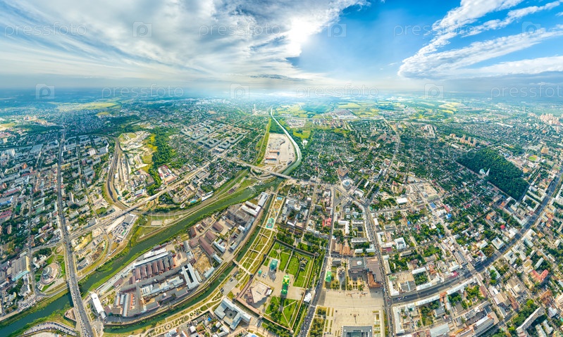 Тула, Россия. Исторический центр с Кремлем. Панорама города. Лето. С высоты птичьего полета