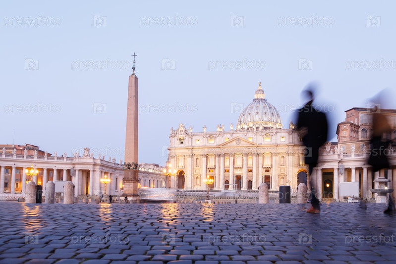 Собор Святого Петра утром. Человеческие фигуры. Рим, Италия