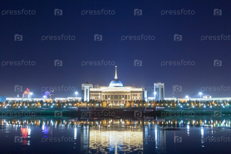 Акорда - резиденция Президента Республики Казахстан в ночное время. Астана