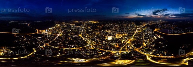 Рязань, Россия. Панорама города 360. Огни ночного города. С высоты птичьего полета