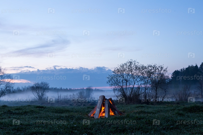Костер вспыхивает и гаснет. Приближается ночь
