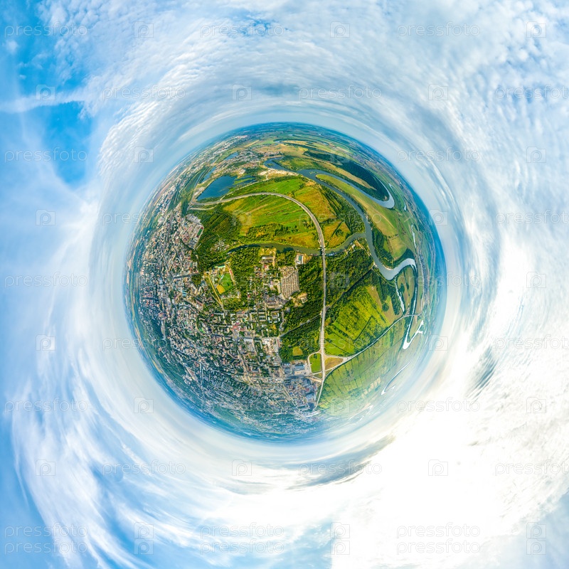 Рязань, Россия. Река Трубеж. Рязанский Кремль. Исторический природный ландшафт Заповедный луг. 360-градусный панорамный астероид