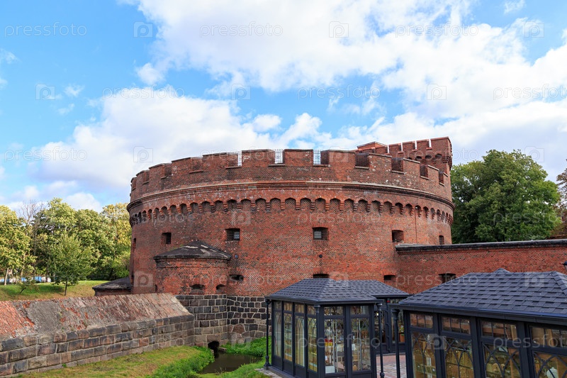 Россия, Калининград. Крепостная башня середины девятнадцатого века. Расположен в центре Калининграда на берегу Верхнего озера