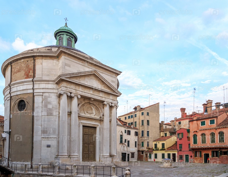 Венеция, Италия. Церковь Ла Маддалена. Текст метки - географические названия объектов и мест