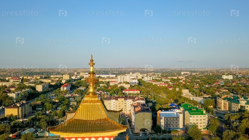 Золотая обитель Будды Шакьямуни на рассвете — крупнейший буддийский храм Республики Калмыкия, один из крупнейших буддийских храмов Европы. Элиста, Россия