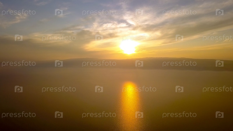 Россия, Озеро Байкал, Остров Ольхон, Закат над бухтой Малого моря, С дрона