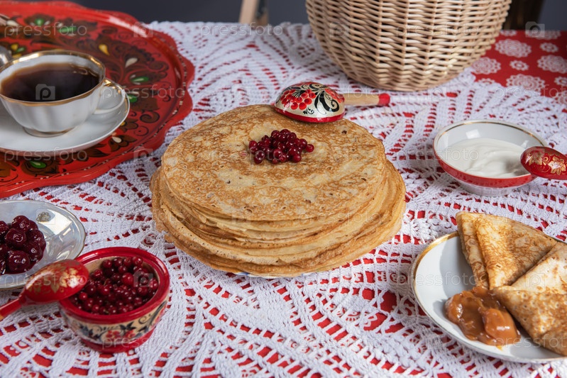 Русские блины с ягодами и сметаной