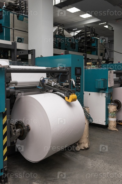 Интерьер склада типографии с печатной машиной