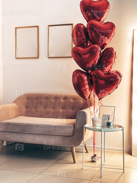Интерьер стильной гостиной, украшенной ко Дню святого Валентина