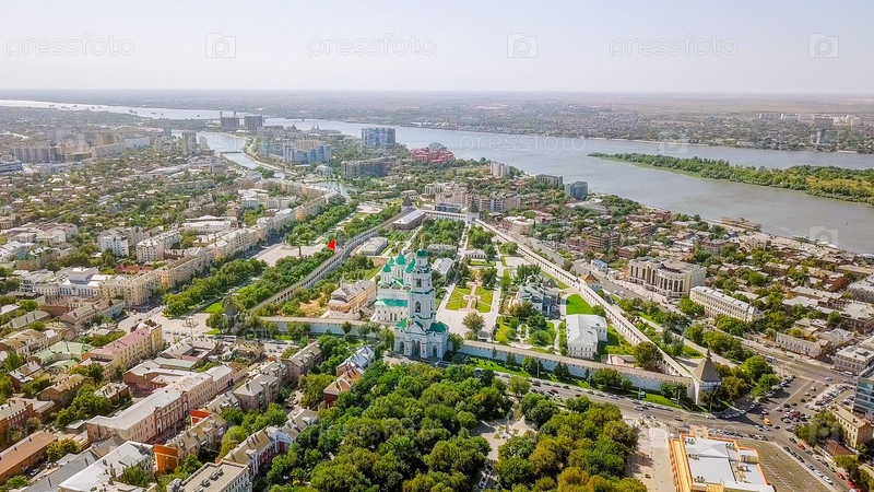 Вид с воздуха на Астраханский Кремль, историко-архитектурный комплекс. Россия, Астрахань