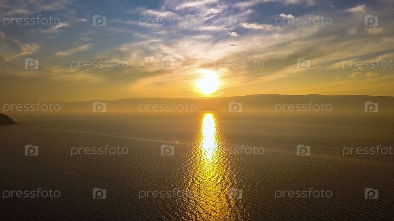 Россия, Озеро Байкал, Остров Ольхон, Закат над бухтой Малого моря, С дрона