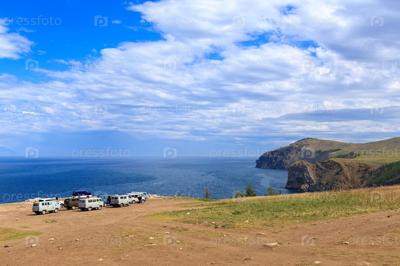 Российский внедорожник на севере острова Ольхон, Байкал, Россия