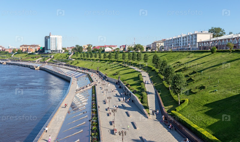 Город Тюмень, набережная реки Туры. на русском тексте - ТЮМЕНЬ
