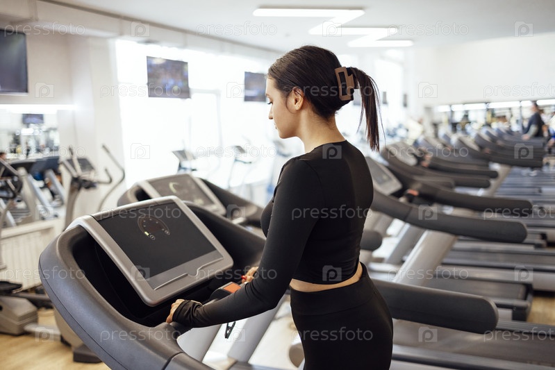 Привлекательная молодая спортивная(ый) женщина, работающая в тренажерном зале