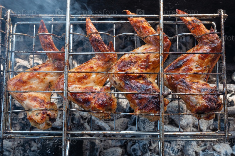 Острые маринованные куриные крылышки, приготовленные на гриле на гриле. Концепция летнего отдыха