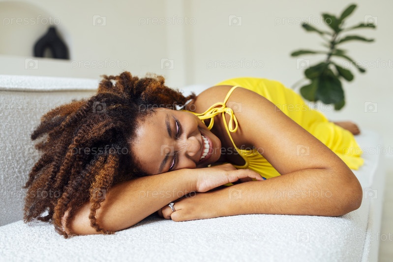 Красивая фигуристая негабаритная молодая американка афто в желтом платье