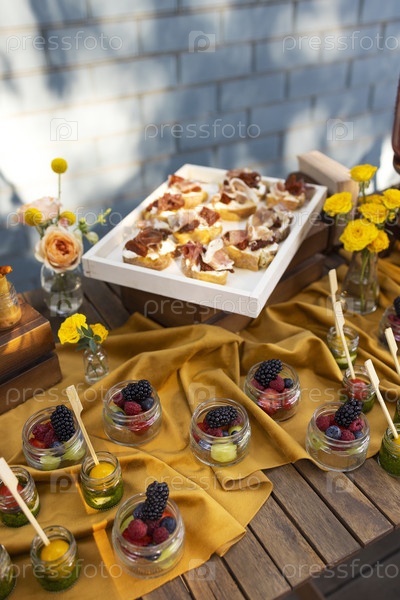 Барбекю на заднем дворе летом, элегантное оформление, роскошный кейтеринг