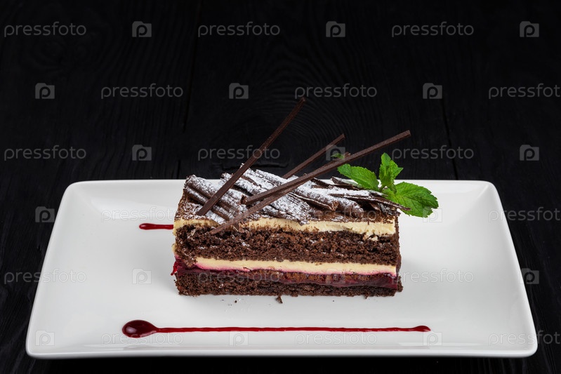 Шоколадный торт с листьями мяты