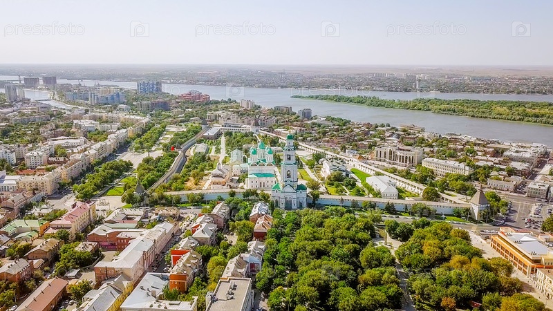 Вид с воздуха на Астраханский Кремль, историко-архитектурный комплекс. Россия, Астрахань