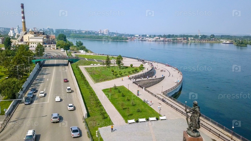 Россия, Иркутск. Набережная реки Ангары, Памятник основателям Иркутска. Текст на русском - Иркутск, От Дрон
