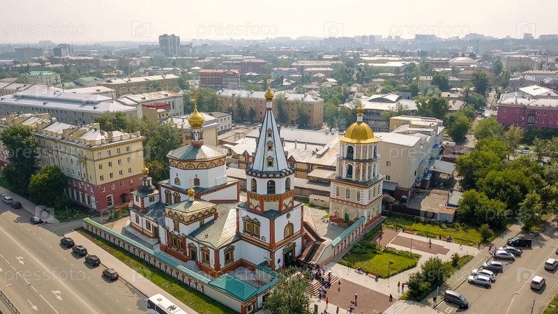 Россия, Иркутск. Богоявленский собор. Православный храм Католический храм, Из Дрона