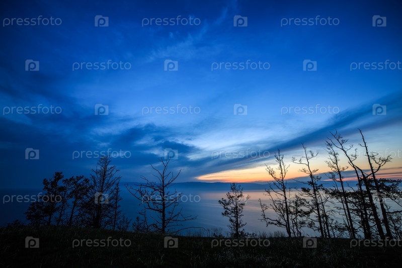 Время после захода солнца над Байкалом. Малая морская бухта, вид с острова Ольхон